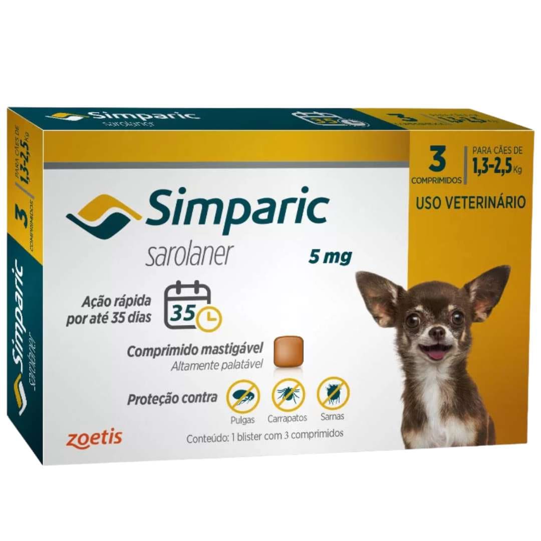Antipulgas Zoetis Simparic 5 Mg Para Cães 1,3 A 2,5 Kg C/03 Comprimidos