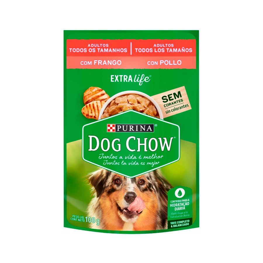 A Ração Úmida Dog Chow Cães Adultos Frango é um alimento completo e balanceado, desenvolvido pela Purina exclusivamente para cães adultos de todas as raças e portes. Com saboroso patê de frango, esse sachê de 100g garante uma refeição suculenta e nutritiva para o seu pet.