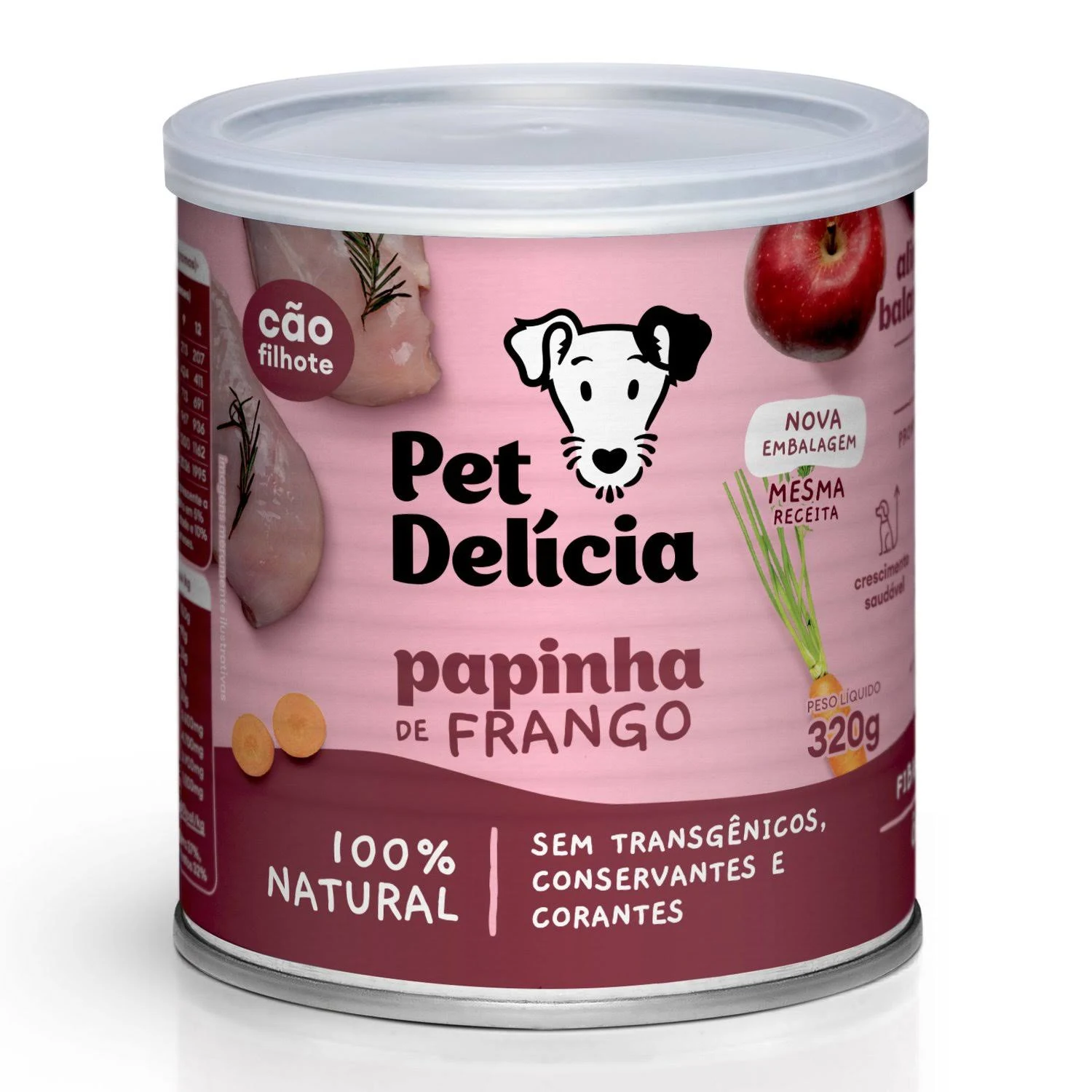 A Ração Úmida Pet Delícia Cães Filhotes Papinha de Frango proporciona uma alimentação completa, elaborada com ingredientes naturais e frescos, essenciais para o desenvolvimento saudável dos cães filhotes. Cortes nobres de frango e legumes frescos garantem uma fórmula livre de conservantes, transgênicos, corantes e sabores artificiais.